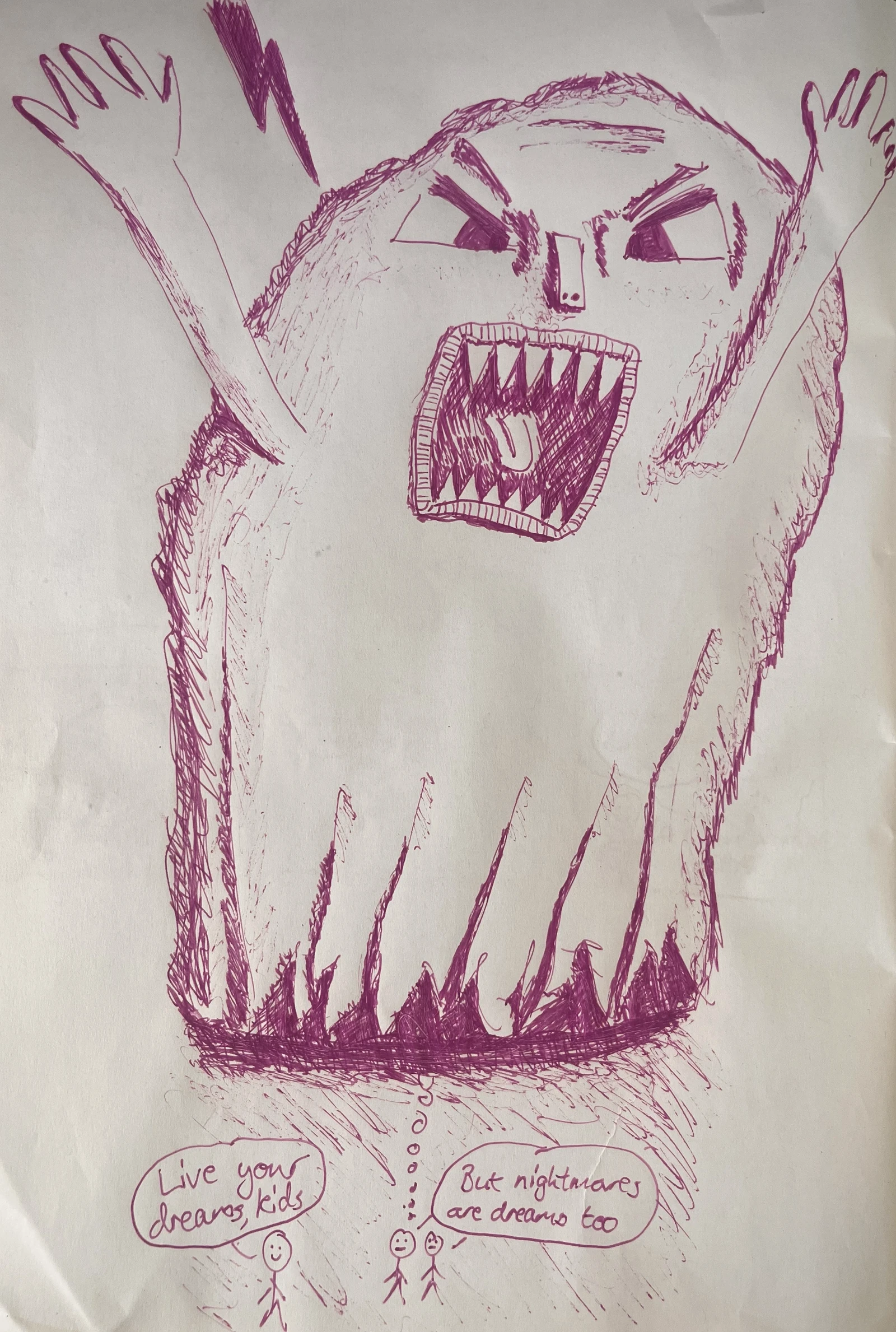 Live Your Dreams, Kids! December 2025 Notes We often tell our kids to live their dreams. Nightmares are dreams too. Contact me about this comic