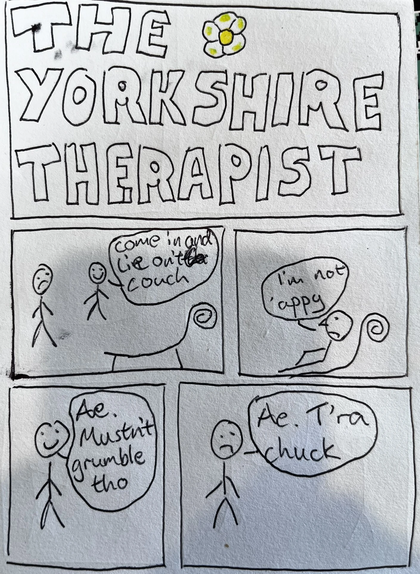 The Yorkshire Threapist - Therapy First November 2025 Notes If your therapist was from Yorkshire, what would you expect? Contact me about this comic
